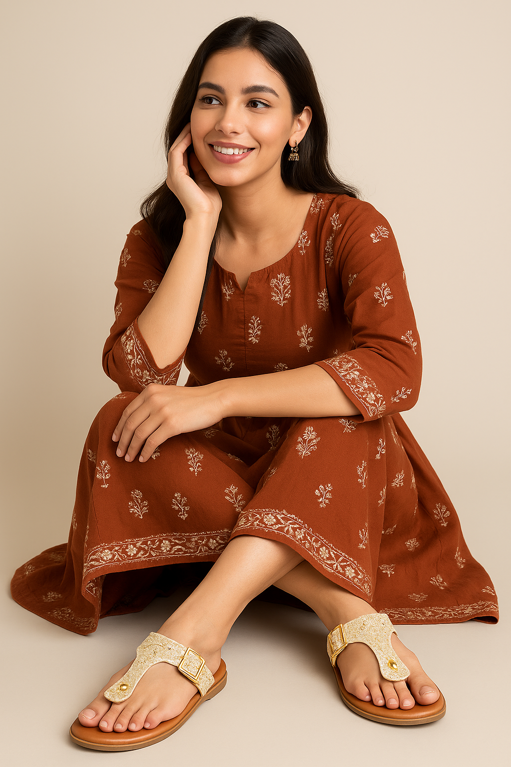 • Secure Fit: Adjustable gold buckle ensures a snug fit for every foot.